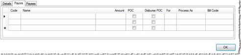 · Disburse POC: This checkbox is editable when the POC checkbox is selected. Selecting Disburse POC will generate a Payee grid row which will create a disbursement for the selected payee code.