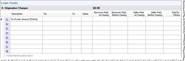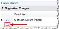 · The first line, labeled of Loan Amount (Points), is required and may not be deleted. You may manually enter the percentage of points in the description field, or select the 01 line hyperlink to access the Charge Details dialog and calculate the percentage based on the loan amount.