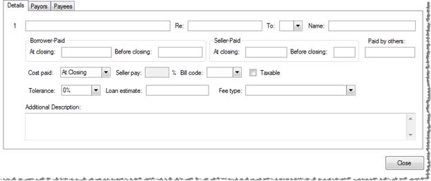 · Details tab: Two unique fields are included on this section’s details tab; they assist with escrow activities and function similarly to the 1000 section of the HUD-1: