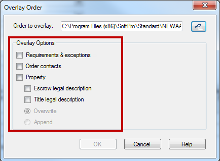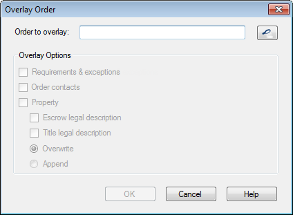 - From an open order, press Overlay Order button in the ribbon under the Order tab. The Overlay Order dialog appears.