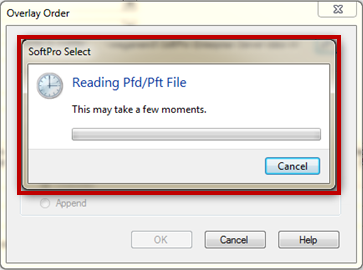- The message “Reading Pfd/Pft file” will display until the file can be overlaid. The user may cancel at any time.